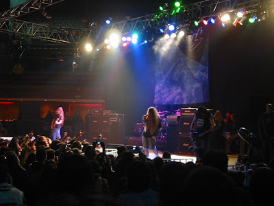 Todo el mundo esperaba ansioso la salida de la banda para ver finalmente el “Reunion Tour”, con la participación de los miembros originales más el “invitado de lujo” en la persona de Nick Barker, el extraordinario baterista inglés que saltó a la fama luego de su paso por Cradle of Filth y Dimmu Borgir, los dos más exitosos exponentes del black metal mundial. Pero, lamentablemente, de nuevo falló lo único que no puede fallar en un concierto: el sonido. No fue tan horrible como la primera vez, pero nunca fue el óptimo para poder apreciar en toda su plenitud y magnitud a una banda de extrema riqueza instrumental como lo es Testament. Las luces estaban perfectas, el público también (quienes se lo saltaron y cabecearon todo el show), y ni hablar de la banda con una performance y entrega espectacular, pero lo que uno escuchaba por los parlantes no era lo mismo que uno veía sobre el escenario. El inicio con ‘The Preacher’ y ‘The New Order’ era una maraña de sonido; algo mejoró la cosa para cuando tocaron ‘Electric Crown’, y es curioso, porque este fue uno de los temas más vitoreados y que provocaron una gran reacción del público y me acuerdo clarito que cuando salió el álbum “The Ritual” en 1992 donde viene ese tema, fue muy criticado por ser “excesivamente comercial” su sonido y resulta que hoy 15 años después, es considerado todo un clásico de la banda. Al menos, se le ha hecho justicia a ese gran disco.